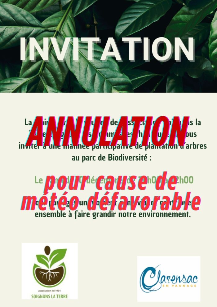 En raison des conditions météorologiques annoncées pour ce samedi et de l’état du terrain, fortement impacté par les pluies de cette semaine, nous sommes au regret de devoir annuler la matinée participative.