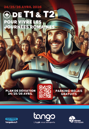 Information déviation du réseau TANGO : A cette occasion et pendant les 3 jours des Journées Romaines, le réseau TANGO est dévié selon le plan en vigueur et ne dessert pas l’Écusson.