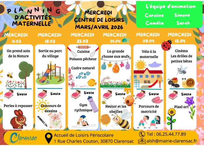 Contact : 06 19 01 47 47 ou alsh@mairie-clarensac.fr