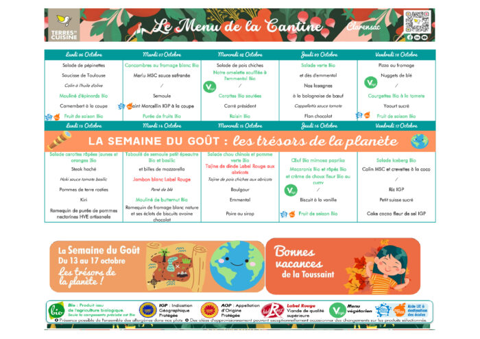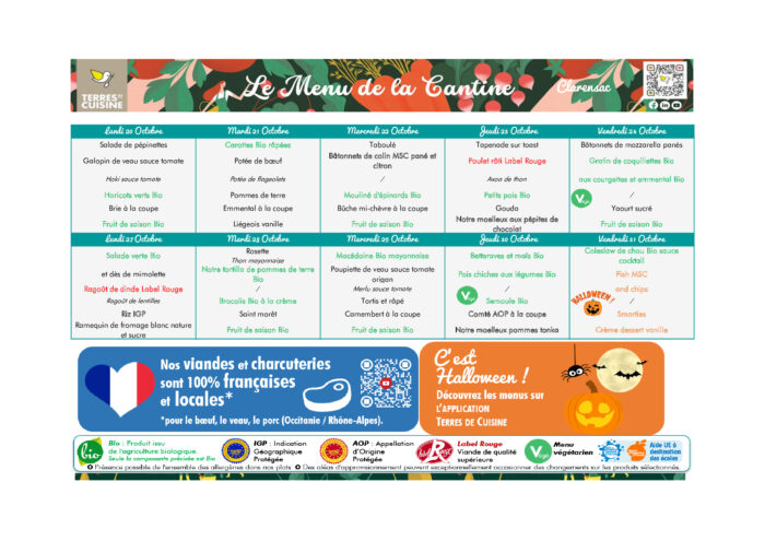 Pour savoir ce qu'il se prépare chaque jour pour nos cantines, vous pouvez consulter les menus ci-dessous !